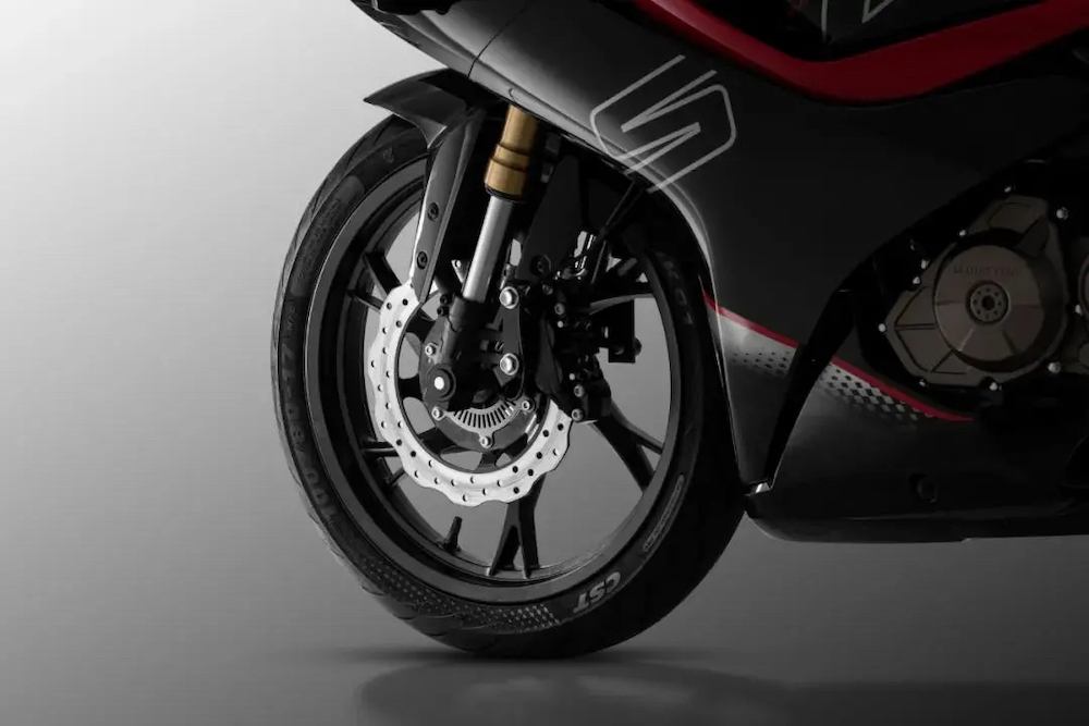 Sistem suspensi fork terbalik (USD) di depan, dan monoshock di belakang. Sistem brek cakera tunggal 260mm dengan kaliper dwi-piston (depan), dan cakera tunggal 240mm dengan kaliper 2-piston (belakang). Juga dilengkapkan Sistem Brek Anti-Kunci (ABS) dwi-saluran.