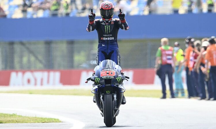 DUO Yamaha Monster Energy, Fabio Quartararo dan Maverick Vinales mendominasi TT Assen sebentar tadi apabila masing-masing mendapat kedudukan pertama dan kedua.