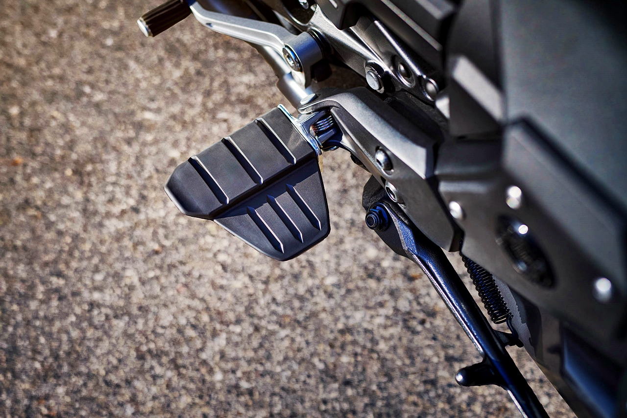 - Depan Brek cakera kembar 320mm dengan kaliper hidraulik 6-piston Nissin termasuk ABS elektronik