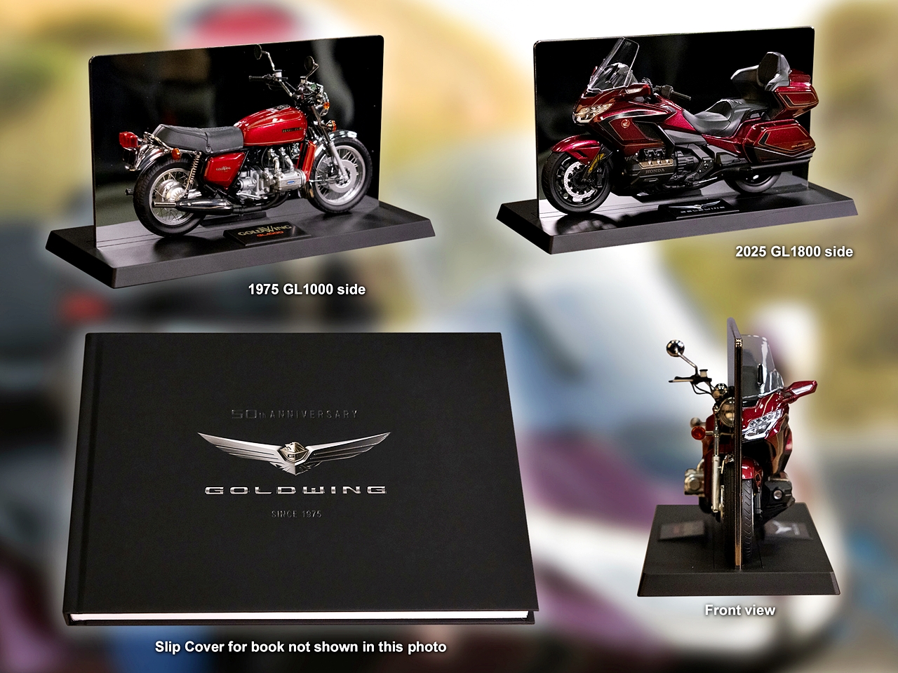 - Buku mewah, model skala 3D 1:12, model 1975 dan 2025 (Gold Wing warna Eternal Gold, Bourdeaux Red Metallic dan Matte Black Metallic, kecuali Light Silver Metallic).