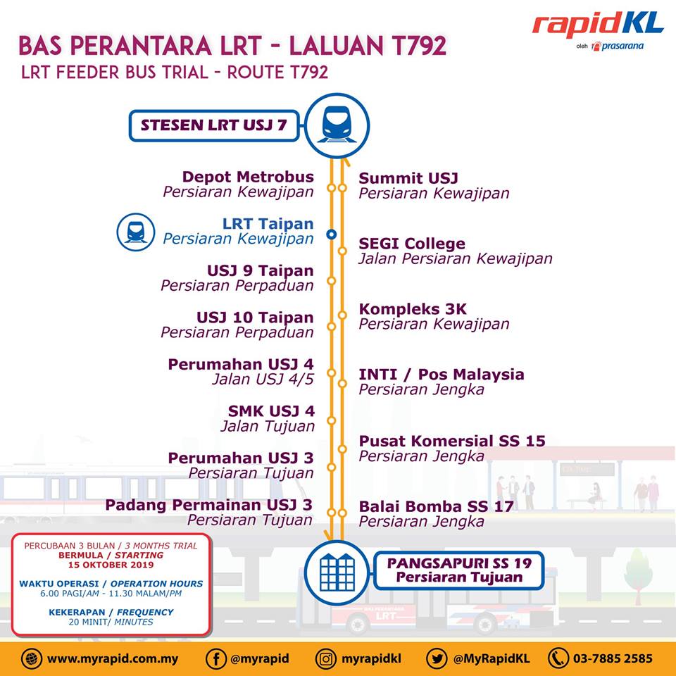 RAPID KL mengumumkan percubaan Bas Perantara LRT Laluan T792 yang akan beroperasi selama tiga bulan bermula hari ini.