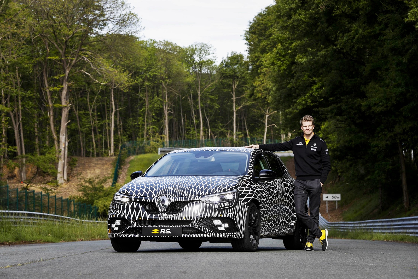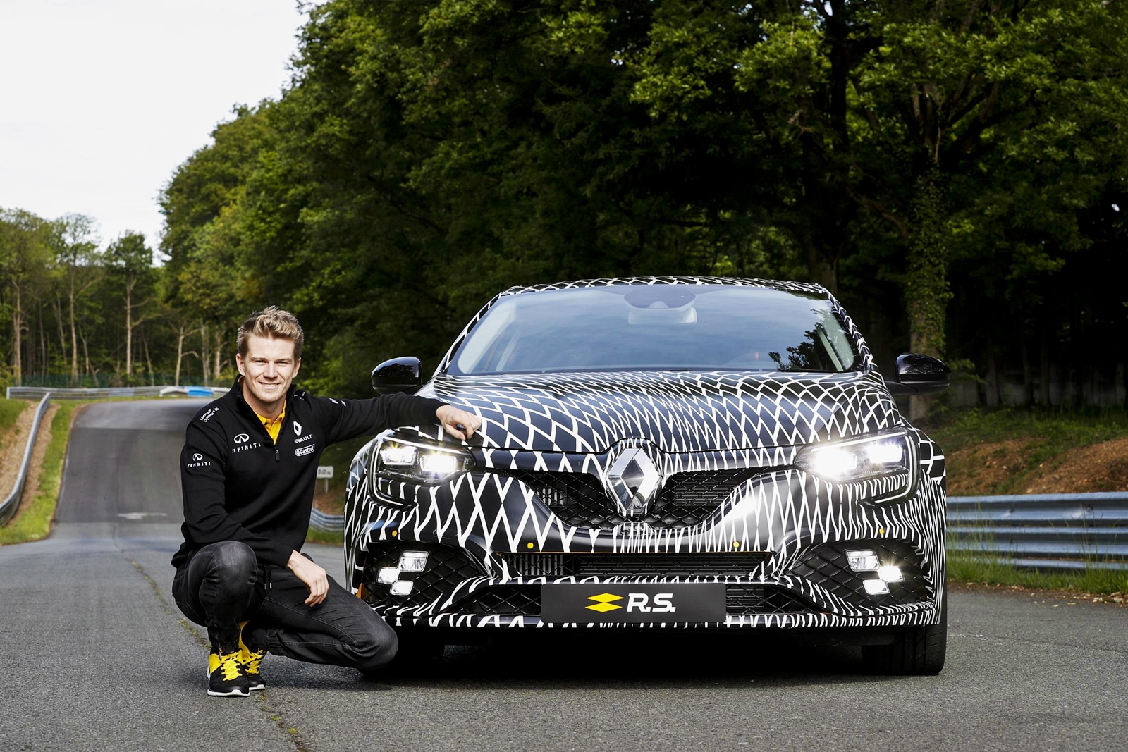 Mégane Renault Sport dipandu Hülkenberg masih lagi dalam mod penyamaran kerana hanya akan didedahkan sepenuhnya pada Pameran Motor Frankfurt 2017 pada September nanti. Renault Mégane R.S. dijadualkan dijual di pasaran pada 2018.