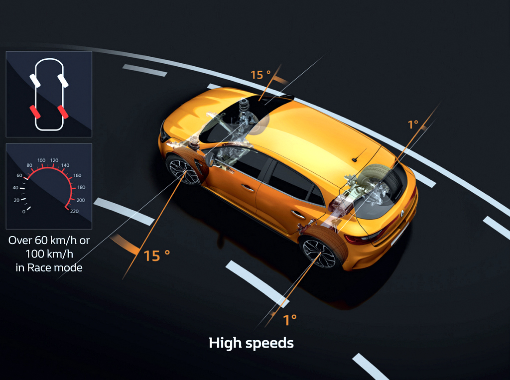 Dilengkapkan casis dengan sistem stereng empat roda 4CONTROL, pertama dalam segmen ini, model generasi keempat ini menjanjikan kualiti kecekapan, ketangkasan, kestabilan dan keselesaan terbaik yang diilhamkan daripada kepakaran RenaultSport.