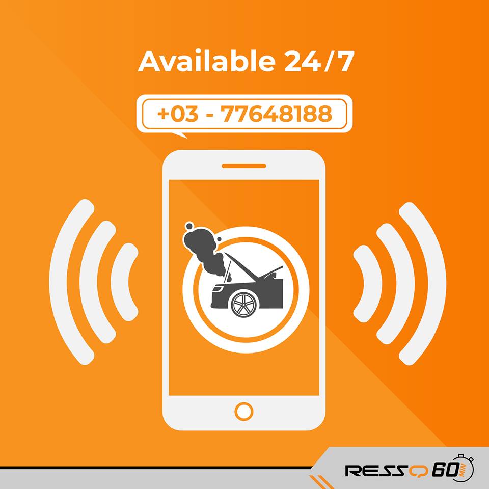 RessQ60min kini boleh dihubungi 24 jam di talian 03-7764-8188, manakala aplikasi mobil dijadualkan dilancarkan bulan ini. Sila layari laman Facebook Ressq60min untuk sebarang kemas kini terbaharu.