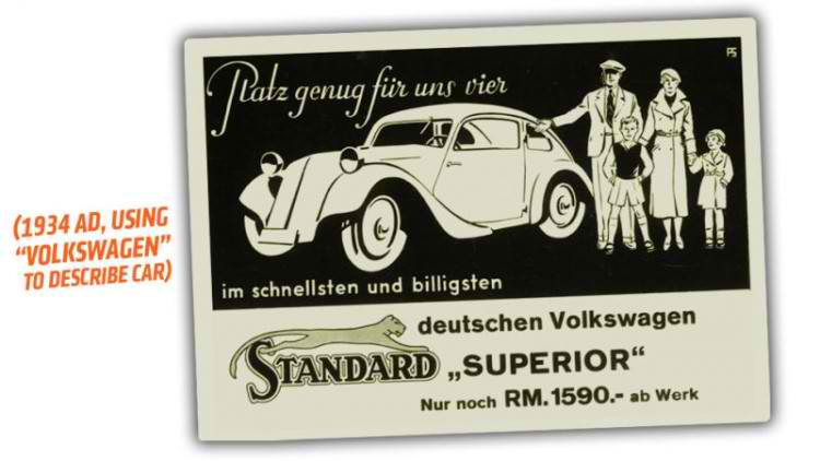 Lima tahun kemudian, ‘kereta rakyat’ yang menggunakan nama sama diperkenalkan Hitler kepada rakyat Jerman sebagai Volkswagen Type 1. Ketua jurutera yang dilantik Hitler untuk projek kereta nasional itu pula ialah Ferdinand Porsche yang bertanggungjawab menghasilkan prototaip pertama Volkswagen dan kemudian popular dengan nama Beetle.