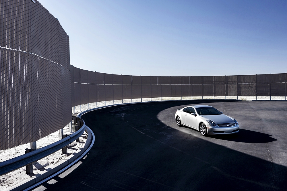 Menurut Kato, Infiniti memilih BMW 3 Series sebagai penanda aras ketika pembangunan Infiniti G35. Kedua-dua BMW 3 Series spesifikasi Amerika Syarikat (AS) dan Jepun dibawa ke medan ujian di Tochigi. Tanda aras begini adalah perkara biasa dalam pembangunan sesebuah model. Berbanding menyaingi fiil pemandu yang ditawarkan pesaing, pasukan jurutera Infiniti mahukan sesuatu berbeza untuk G coupé.