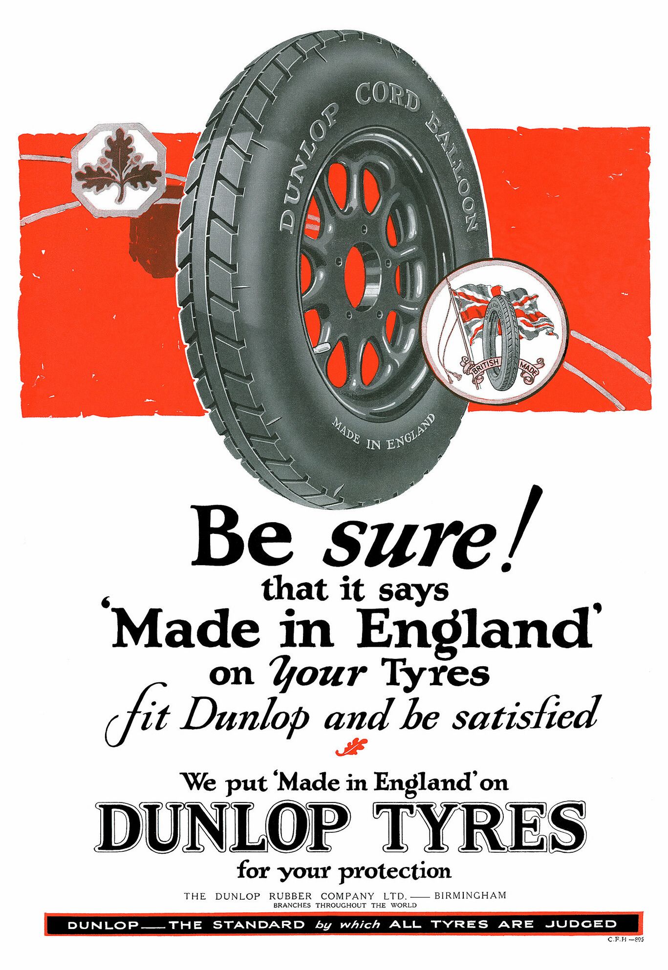 Dunlop Rubber juga memulakan pengeluaran tayar nipis untuk kegunaan kereta. Malangnya usaha dilakukan Dunlop tidak banyak mendatangkan keuntungan kepada beliau.