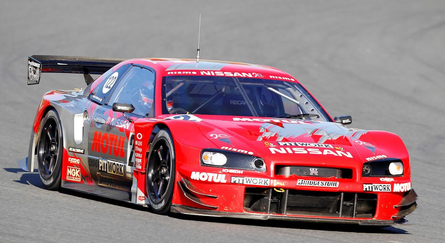 Ada tiga unit R34 GT-R menyertai saingan perlumbaan kelas GT500 dalam Kejuaraan Kereta Grand Touring Seluruh Jepun (All Japan Grand Touring Car Championship, JGTC) 2003 yang mana semua jentera menggunakan enjin VQ30DETT.