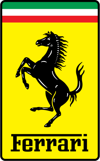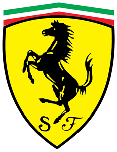 Pada 1932, perisai Ferrari muncul buat pertama kali pada kereta Alfa Romeo untuk pasukan lumba Scuderia di Grand Prix Spa di Belgium. Pada 1947 pula, model 125S, iaitu kereta pertama dihasilkan di Maranello, muncul dengan imej 'Prancing Horse' dengan latar kuning berserta bendera Itali (hijau-putih-merah) di atas.