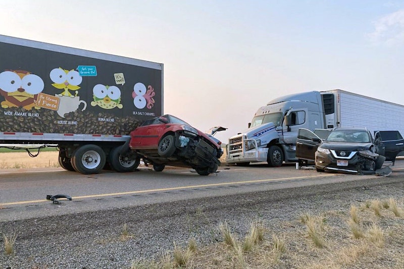 Menurut Peronda Lebuh Raya Utah, kemalangan berlaku akibat ribut pasir yang menyebabkan jarak dan kadar penglihatan semua pemandu terjejas di lokasi kejadian.