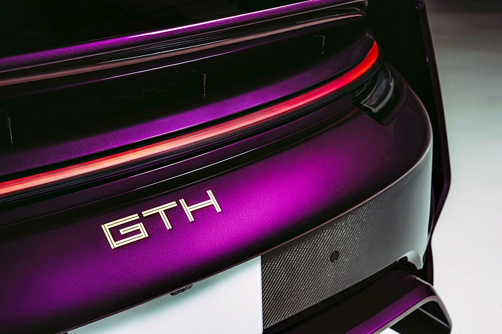Sebagai demonstrasi pilihan penyesuaian pelanggan yang hampir tidak terhad, GTH pertama ini dilapisi luaran warna Storm Purple, manakala bumbung dan bonetnya berwarna gentian karbon visual.