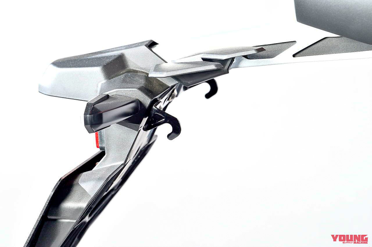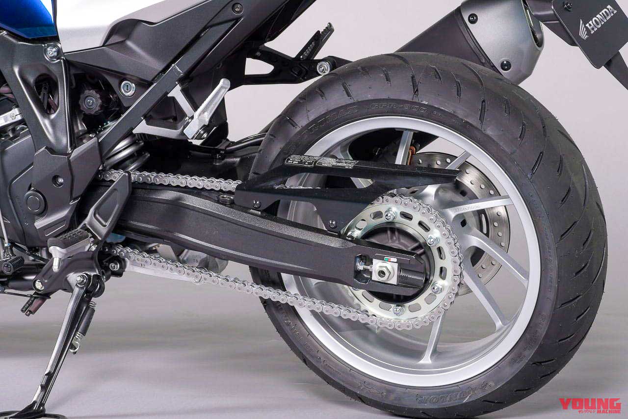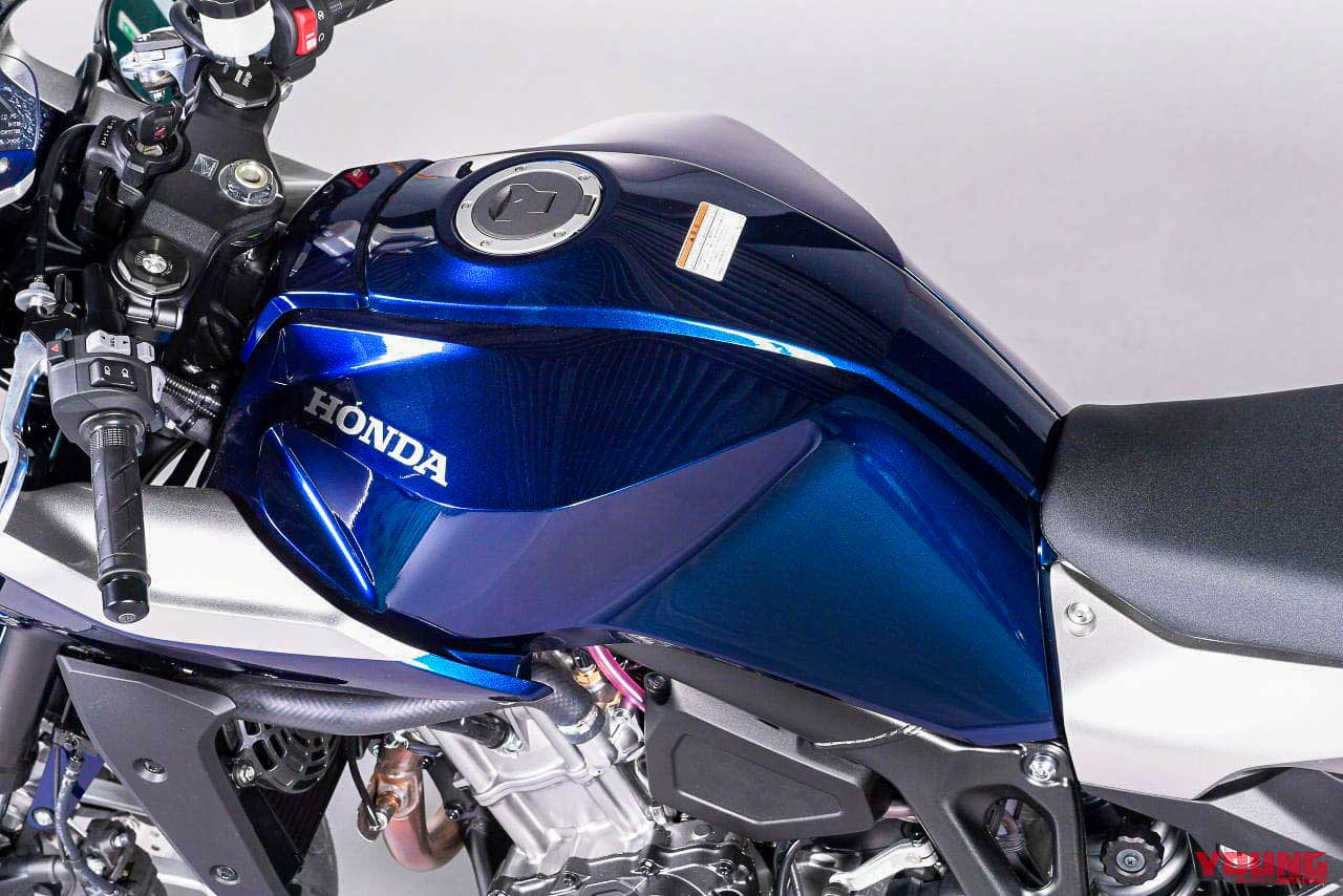 - Tangki minyak direka berkontur, manakala pelana jenis tunggal dengan hujung belakang pendek, seperti signatur model Honda lain.