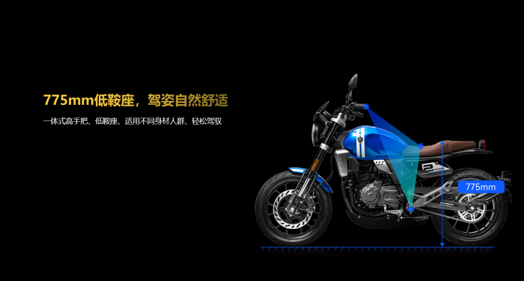 - Tinggi pelana 775mm. Kapasiti tangki minyak 15 liter.