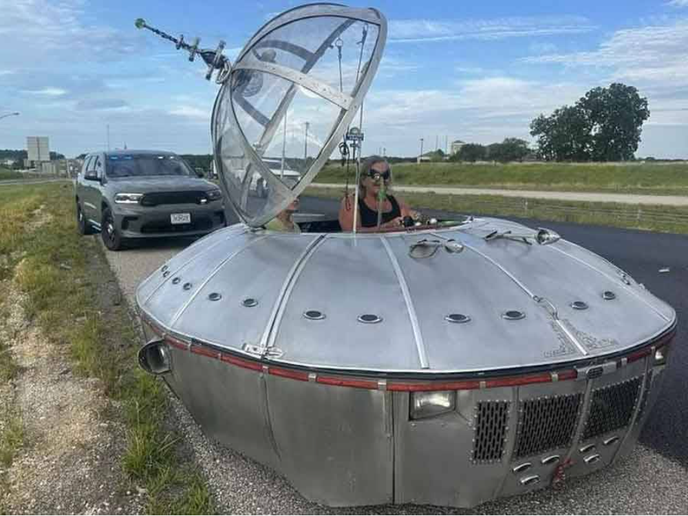 SEBUAH kenderaan berbentuk seperti objek terbang tidak dikenal pasti (UFO) ditahan pihak berkuasa dalam satu sekatan jalan raya di Missouri, Amerika Syarikat (AS).