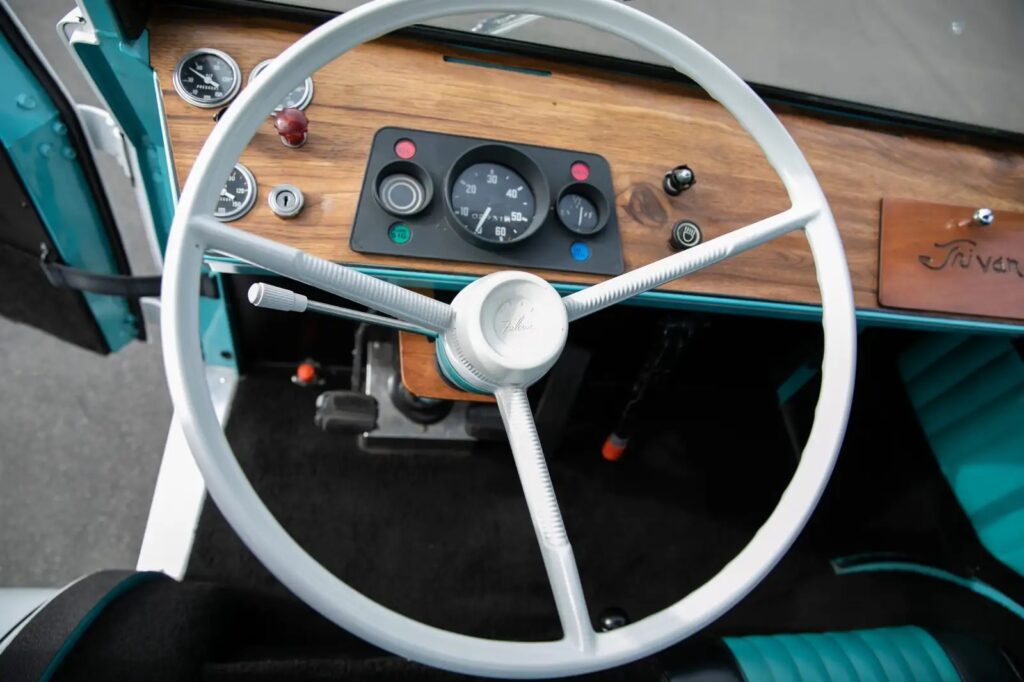 - Walaupun tidak praktikal, rekabentuk luaran dan dalaman Trivan ini sangat cantik dan comel. Warna dwi-tona hitam-biru pada ruang dalaman adalah antara modifikasi dilakukan pemilik terdahulu. Dipadankan stereng putih dan papan pemuka kayu, fiil premium memang dapat dirasai.