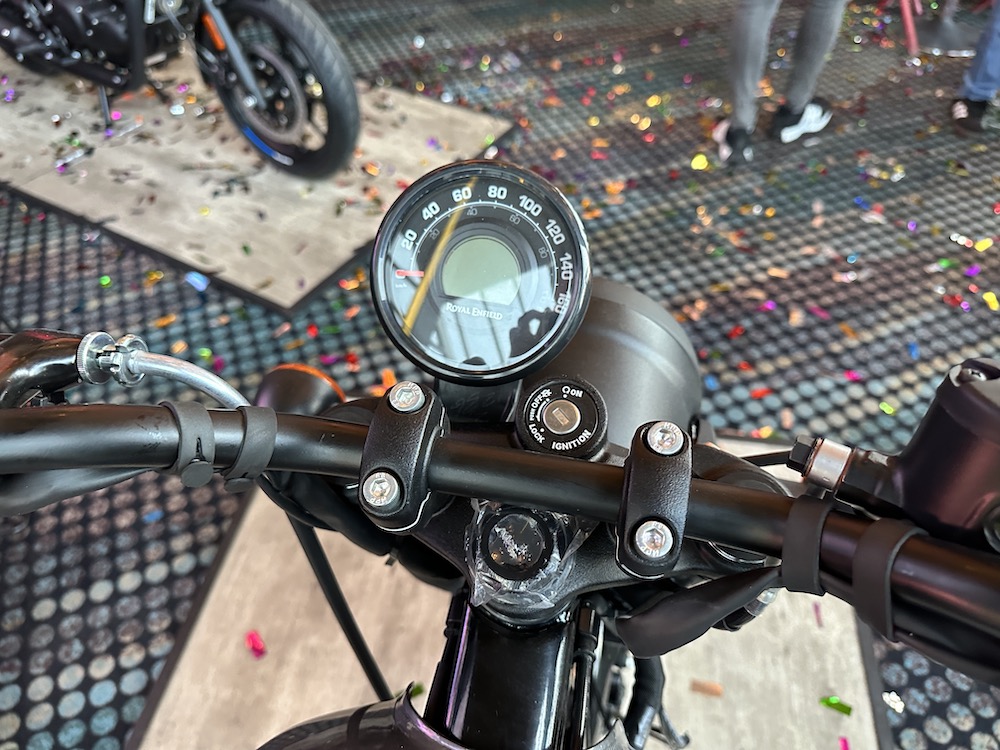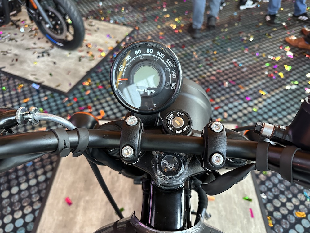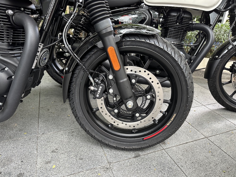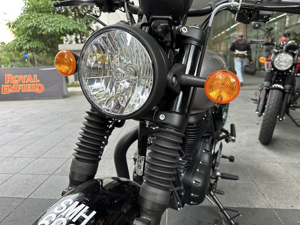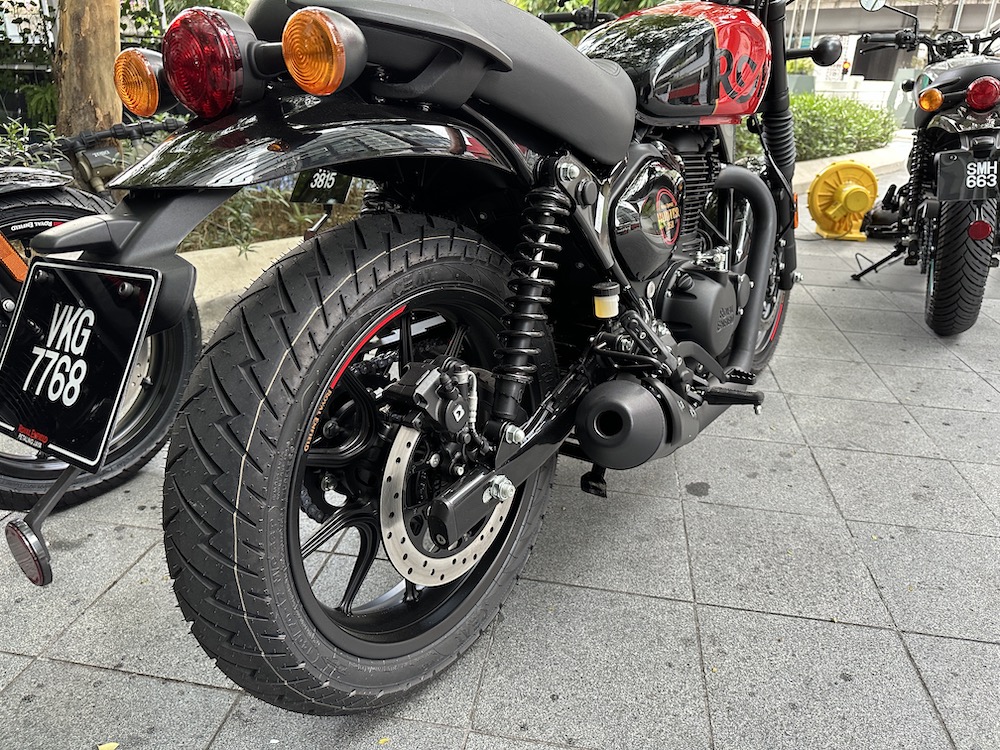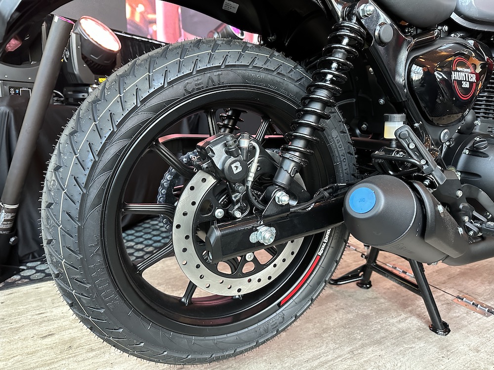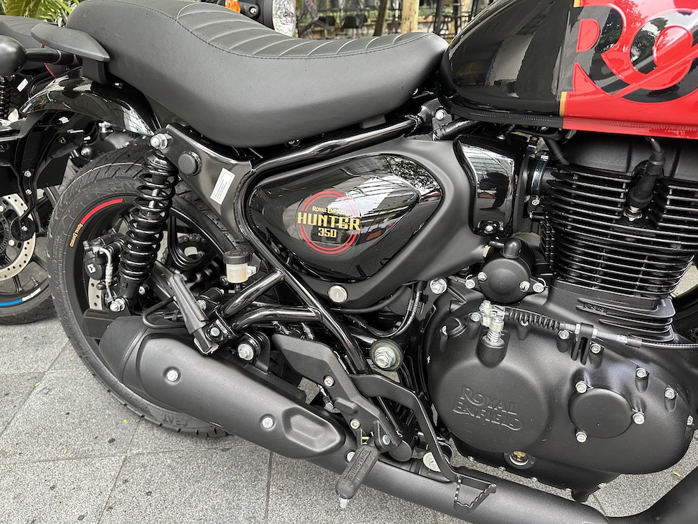 Royal Enfield Hunter 350 (2023) turut diberikan perincian lain seperti panel meter kombi digital-analog, lampu LED dan port USB, fork teleskopik di depan dan dwi-absorber di belakang.