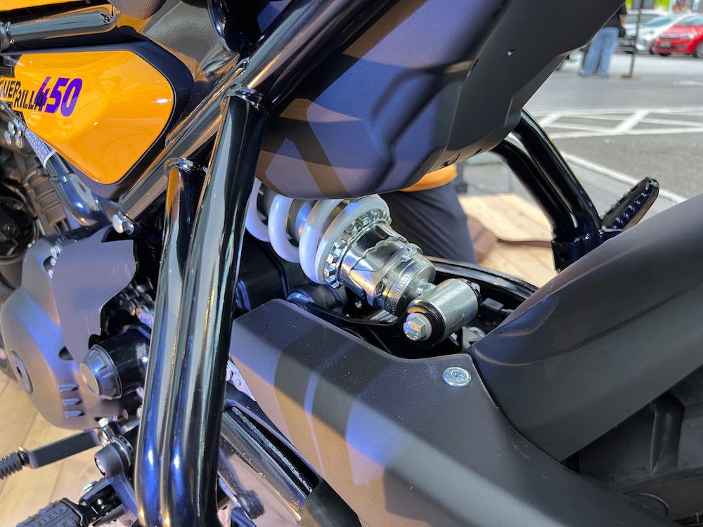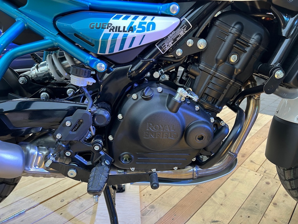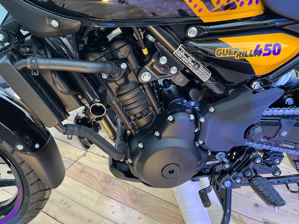 Royal Enfield Guerrilla 450 2025 dijana enjin 452cc, sistem pengurusan enjin (EMS) responsif, dan teknologi elektronik ride-by-wire. Ada dua mod tunggang ditawarkan: Performance dan Economy yang membolehkan penunggang menyesuaikan pengalaman menunggang mengikut mood dan kondisi jalan.