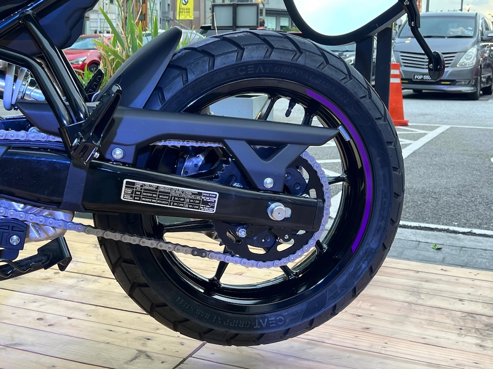 - Tayar 120/70 R17 di depan, dan 160/60 R17 (belakang) serta dilengkapi Sistem Brek Anti-Kunci (ABS) dwi-saluran
