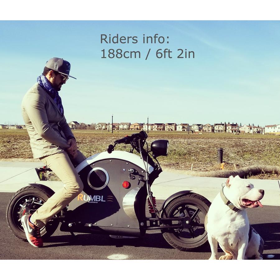 Motosikal 2,000W itu mampu memecut pada kelajuan maksimum 70kmj dengan jarak perjalanan 100km untuk sekali cas penuh. Jentera seberat 105kg itu dikuasakan pek bateri litium-ion 60V yang mengambil masa 2-3 jam untuk dicas penuh. Berdasarkan maklumat kempen dana Rumble Motors, itu ialah motosikal elektrik pertama yang didatangkan dengan bunyi enjin.