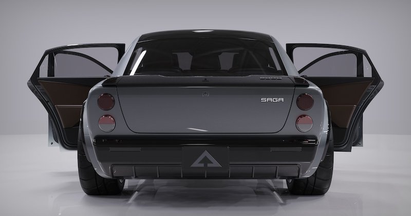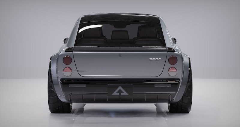 Bahagian sisi nampak lebih menonjol dengan fender besar dan bentuk bumbung gaya coupe. Berikut perincian Saga: