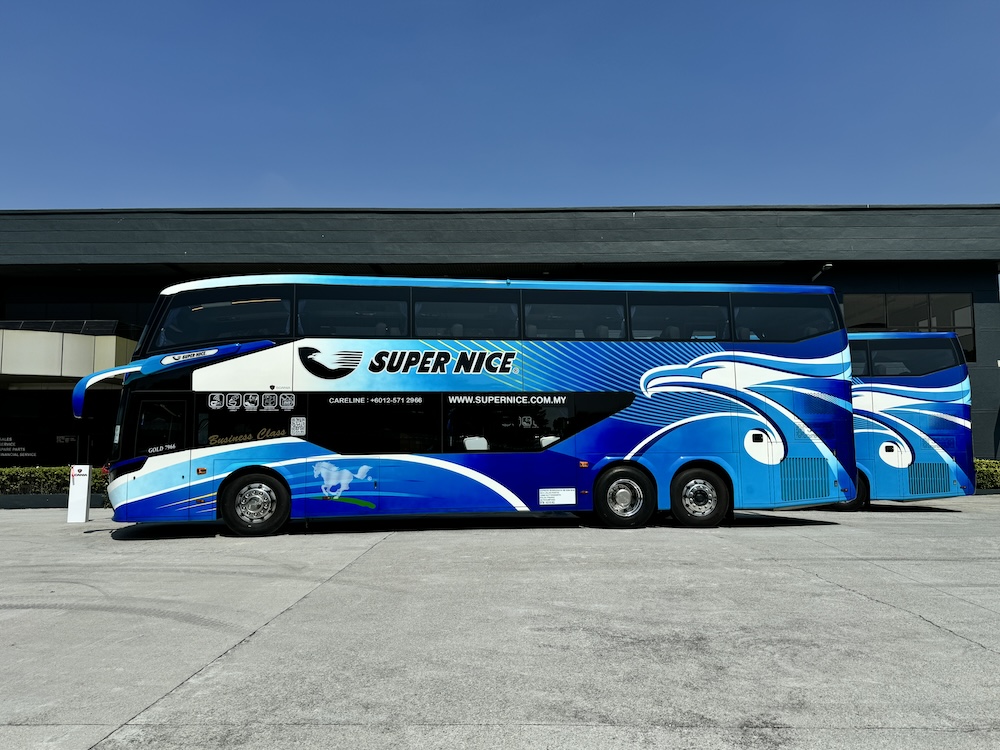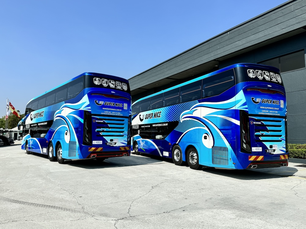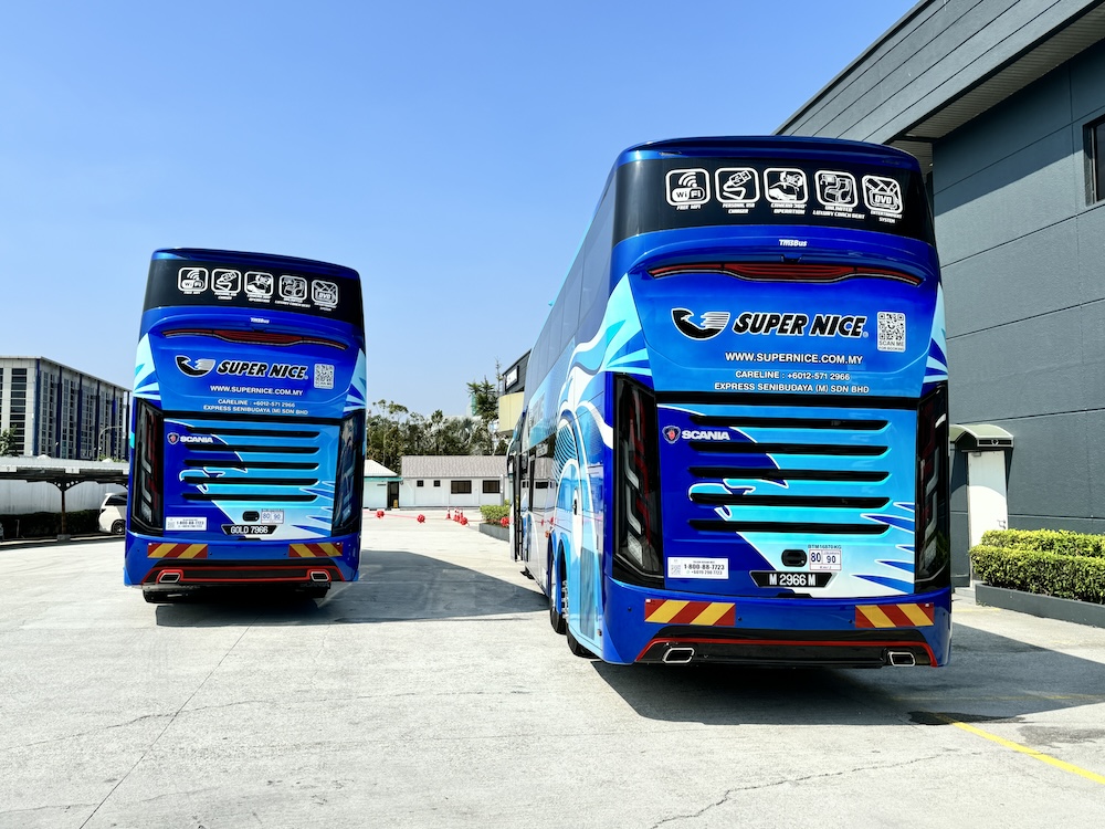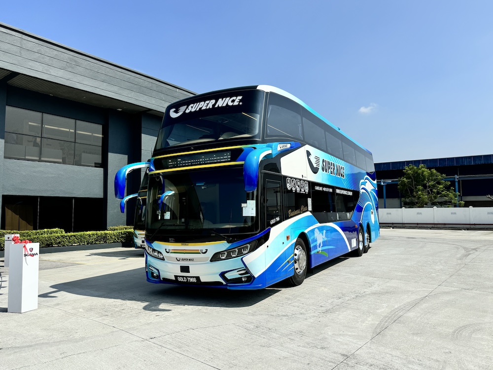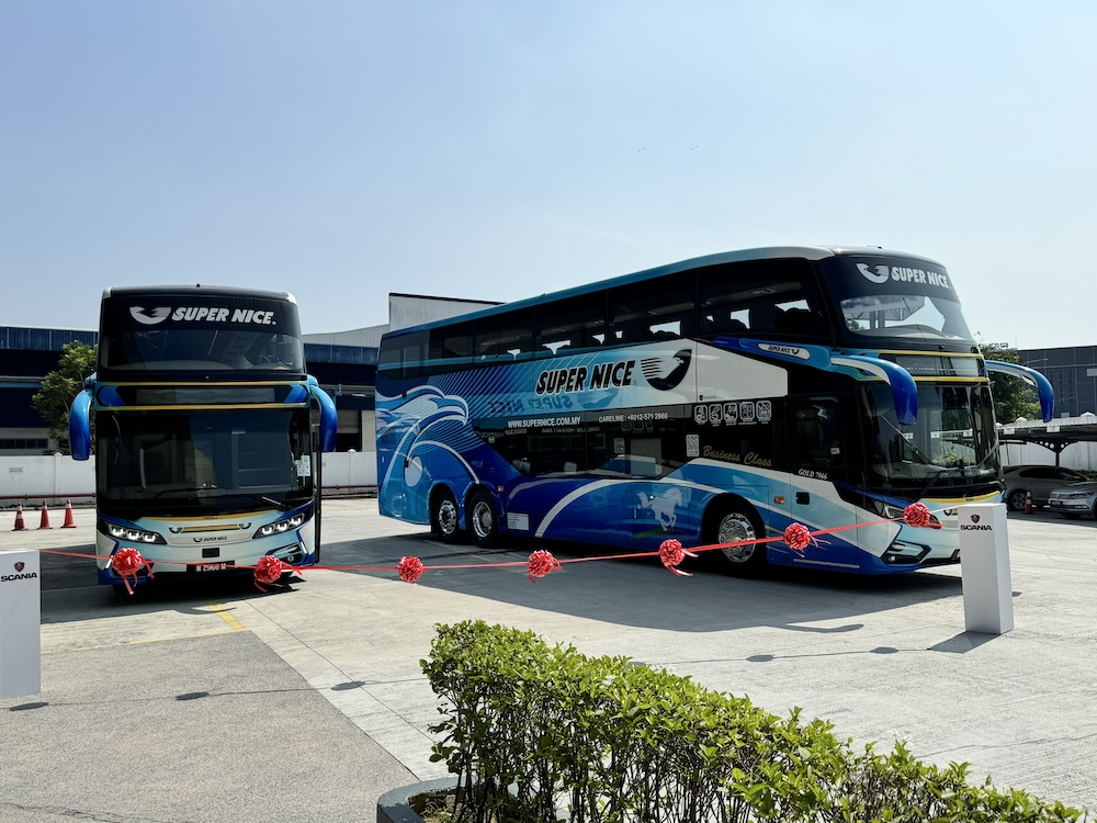 SCANIA Malaysia menyerahkan dua unit bas ekspres dua tingkat yang dilengkapi Sistem Bantuan Pemandu Termaju (ADAS) kepada Super Nice Express.
