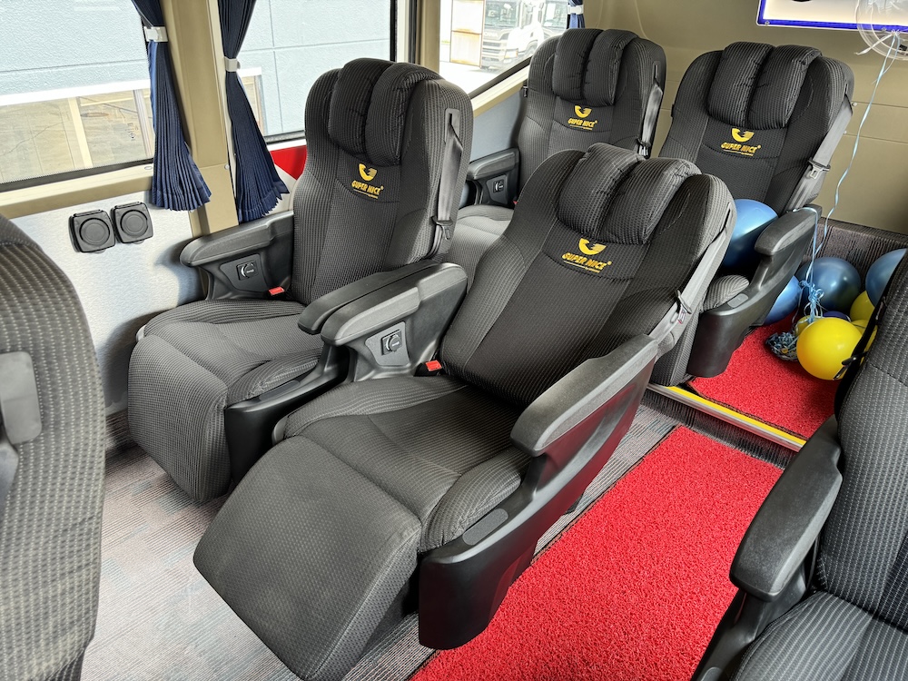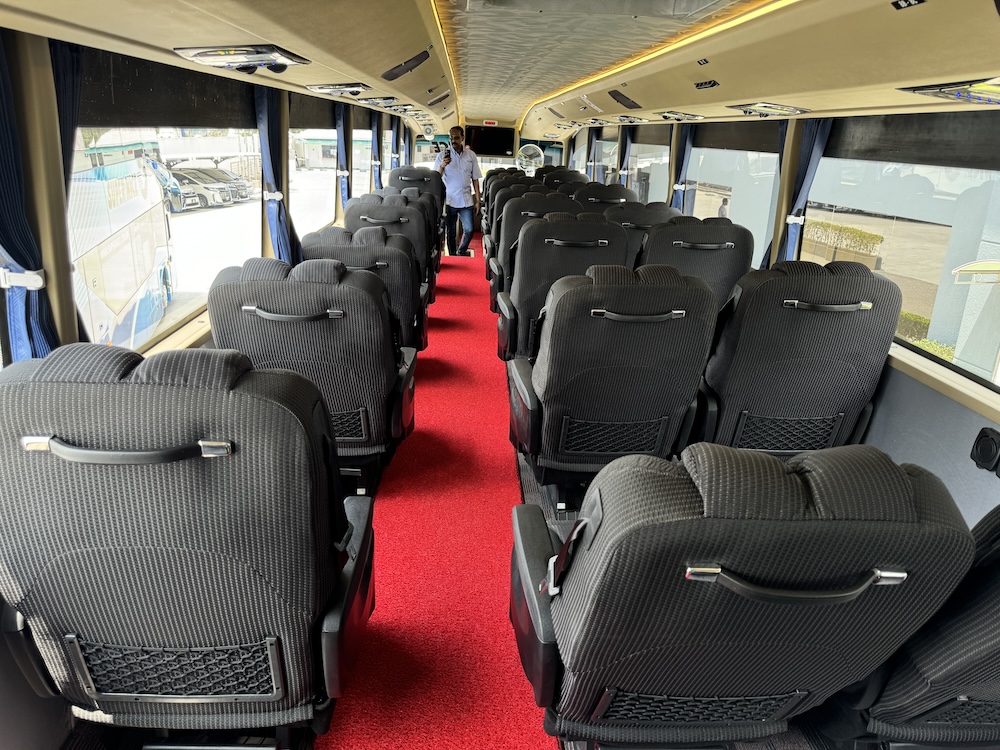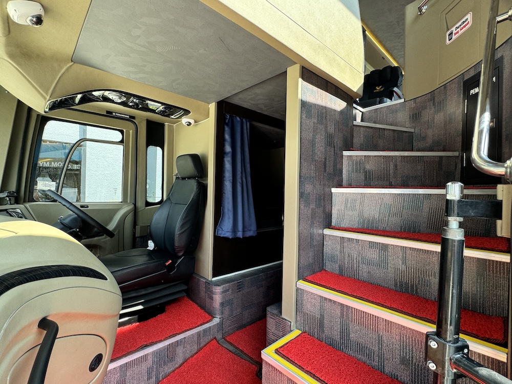 Tingkat bawah bas menyediakan lima kerusi khas untuk Kelas Bisnes, tandas dan ruang pantri, manakala tingkat atas menawarkan 25-kerusi.