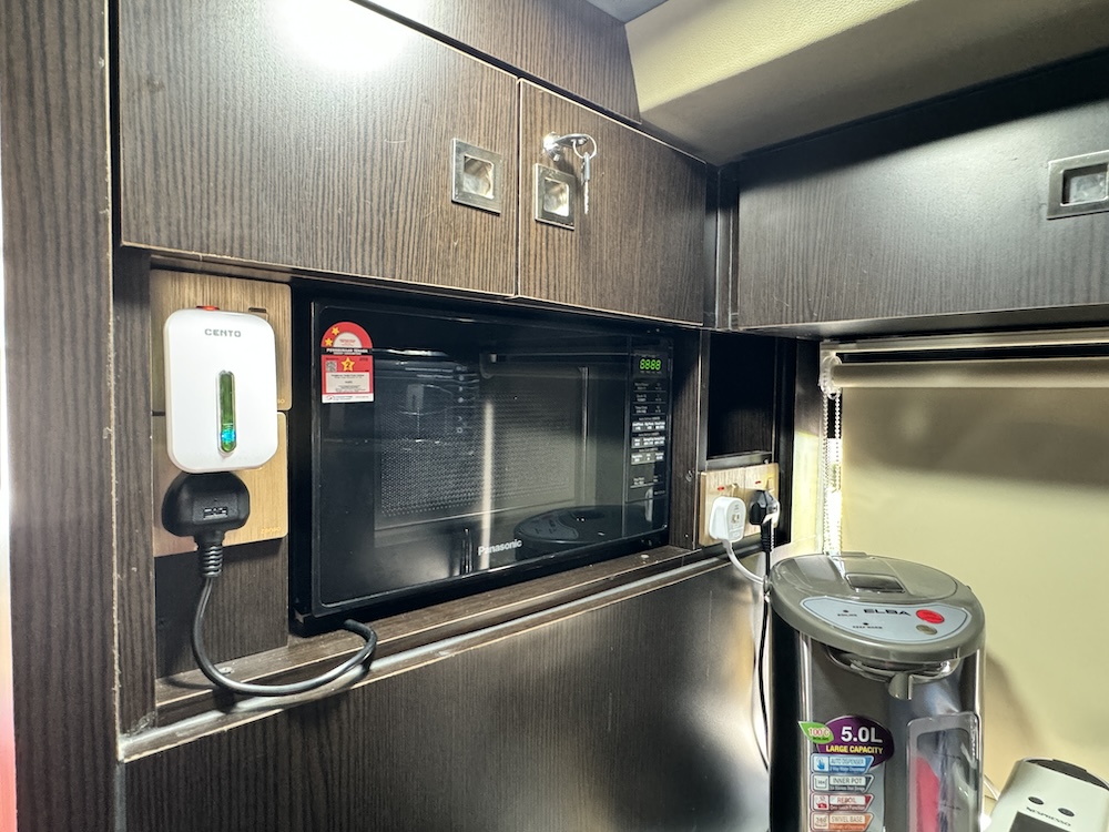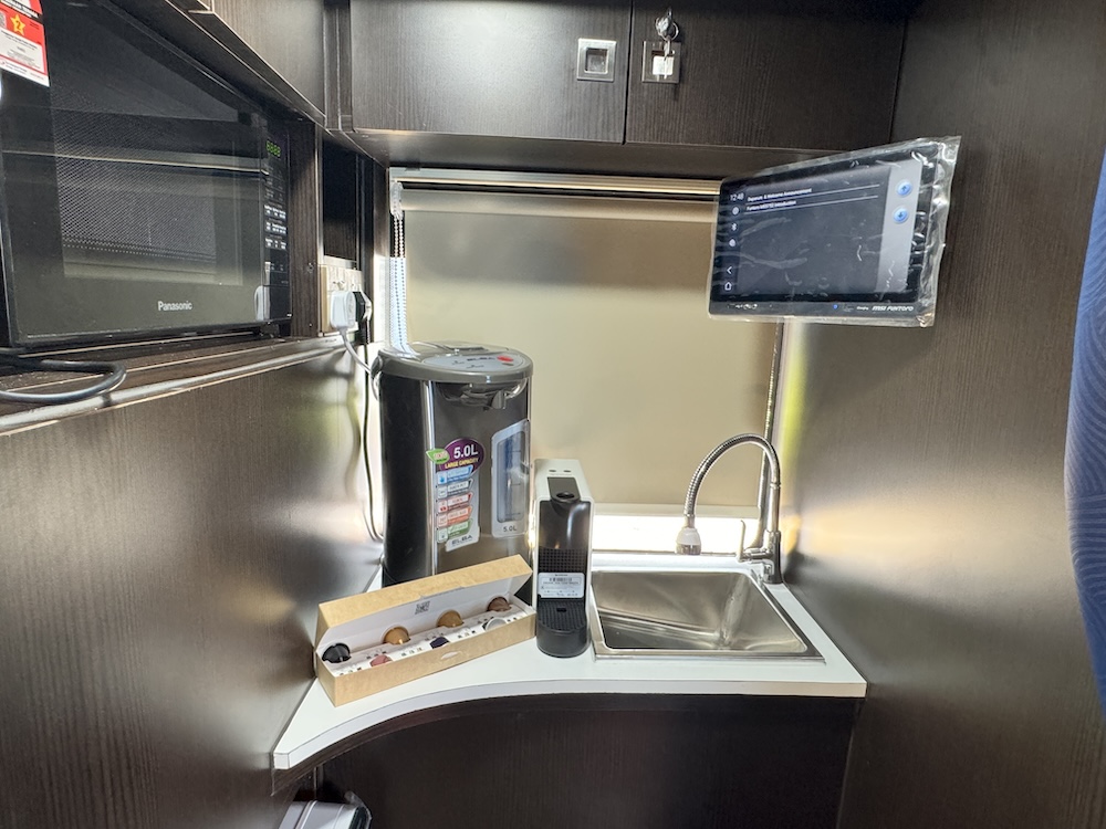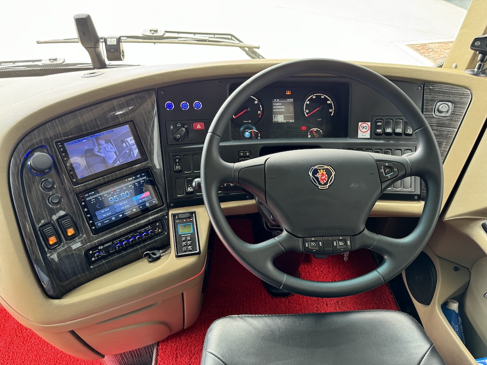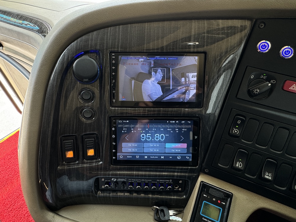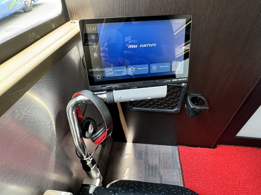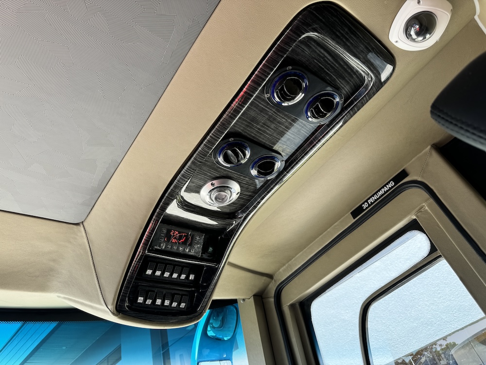 Bas dua tingkat itu juga dilengkapi beberapa kamera yang memaparkan visual pemandu, pintu masuk bas, pintu ke ruang Kelas Bisnes (Business Class), pandangan dalam Kelas Bisnes dan situasi tingkat atas. Semua paparan itu boleh dilihat menerusi satu skrin yang dipasang sebelah kerusi pemandu.
