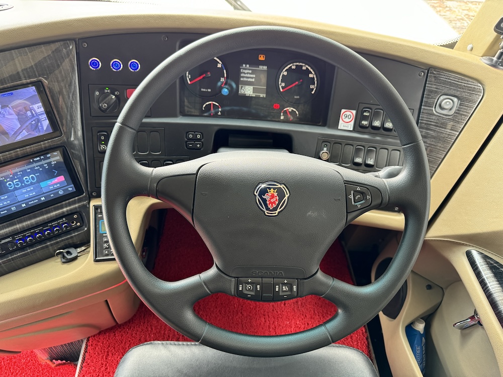 Selain itu, bas dua tingkat Scania K410EB6X2 itu turut hadir dengan Sistem Brek Elektronik (EBS) dengan Sistem Brek Anti-Kunci (ABS) sebagai ciri standard.