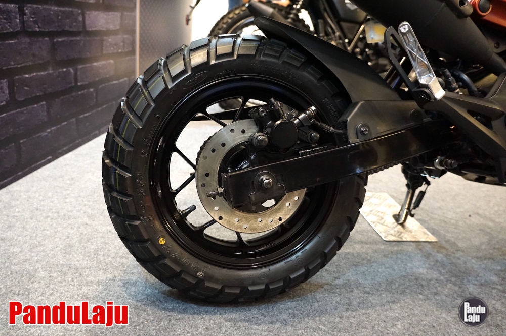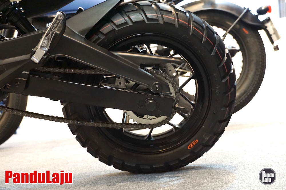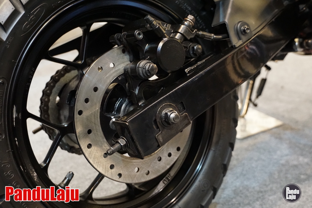 - Rim aloi 12 inci dengan tayar 120/70 (depan), dan 130/70 (belakang).