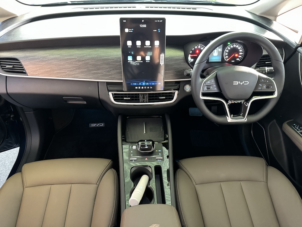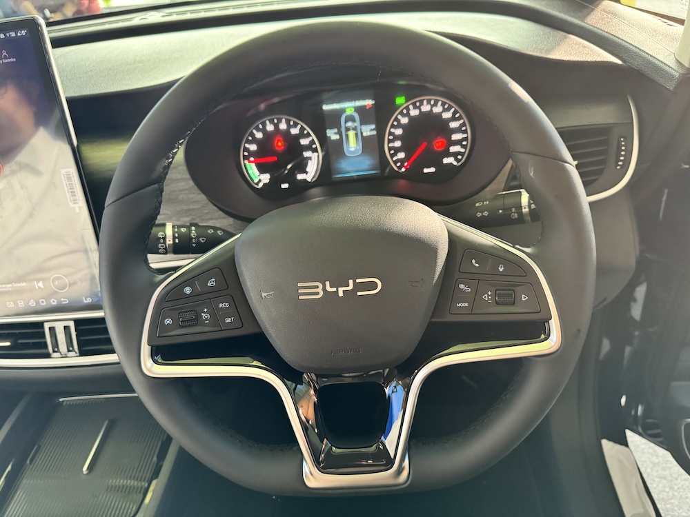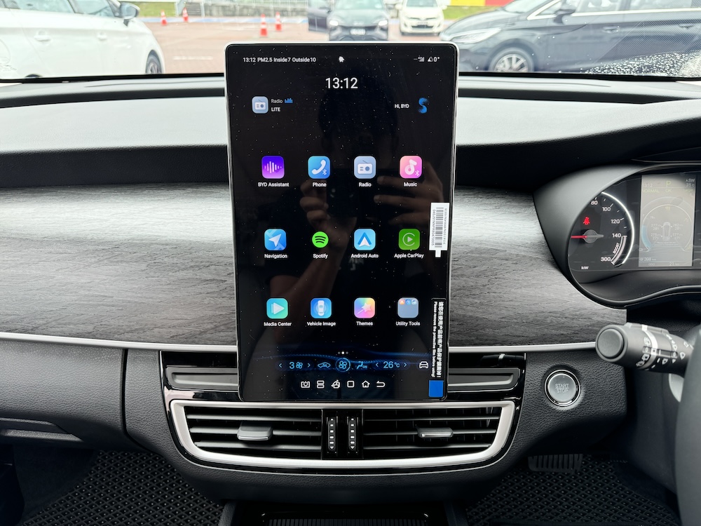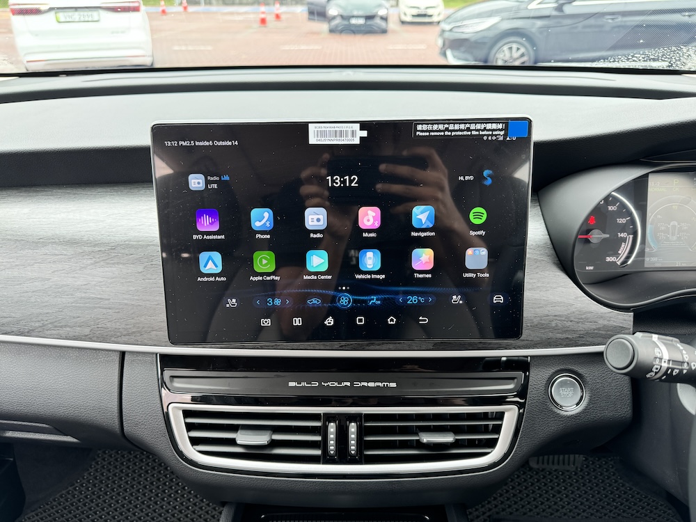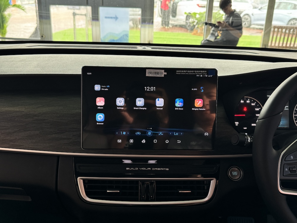 - Unit infotainmen 12.8 inci boleh putar dengan sistem operasi BYD Di-Link, konektiviti Apple CarPlay dan Android Auto.