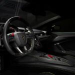 Bahagian dalam mengulangi tema luar dengan kerusi warna Nero Ade (hitam) dan riasan Verde Scandal selain sulaman logo Lamborghini dalam warna sama.