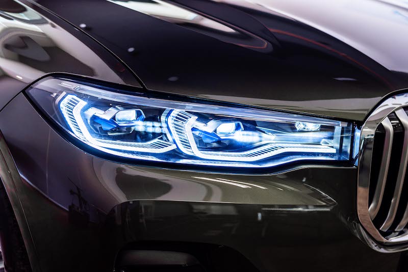 - Mengekalkan imej tegap dengan gril besar dan lampu depan BMW Laserlight untuk tahap kecerahan sejauh 600 meter. Ada tambahan lampu kabus LED.