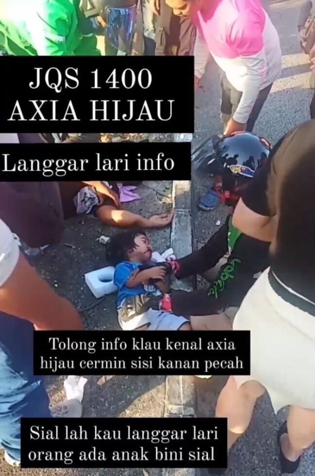 Berdasarkan maklumat dikongsi netizen, keluarga ini terlibat dalam kemalangan langgar lari selepas motosikal dinaiki mereka dirempuh sebuah Perodua Axia hijau. Insiden kemalangan itu dilaporkan berlaku Jalan Tebrau dekat Hotel Crytal Crown, Johor Bharu, petang semalam.