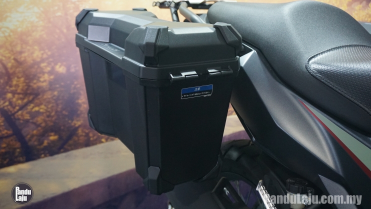 Kawasaki Versys X250 Tourer (2023) versi CBU dari Jepun itu dilengkapi standard beberapa aksesori seperti gad tangan, visor angin tinggi, kowl enjin, bar rempuh depan, dua unit kotak sisi, pelindung bar hendal (bahagian hujung) dan tongkat kembar.