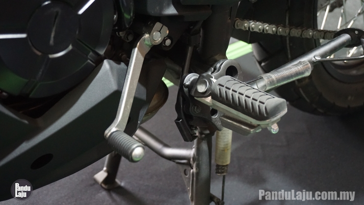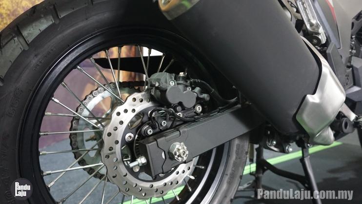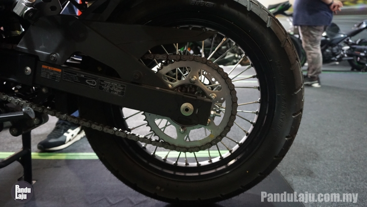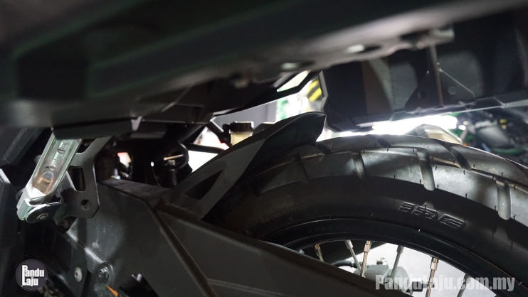 - Rim jejari 19 inci dengan tayar 100/90 (depan) dan 17 inci dengan tayar 130/80 (belakang).