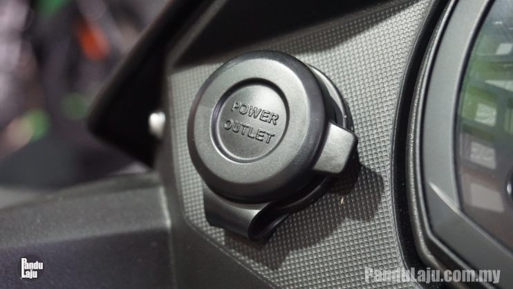 - Soket pengecas disediakan sebelah panel meter jenis kombinasi analog dan digital