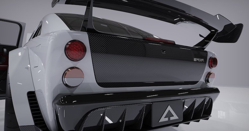 - Sebahagian besar komponen dibentuk menggunakan gentian karbon, termasuk kit badan, pintu but, bumbung, perumah lampu utama, perumah cermin sisi, papan pemuka dan kerusi.