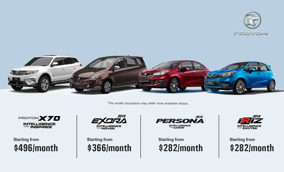 Model baru Proton dijual pada bayaran ansuran serendah B$282 (RM854) sebulan untuk model Persona dan Iriz.