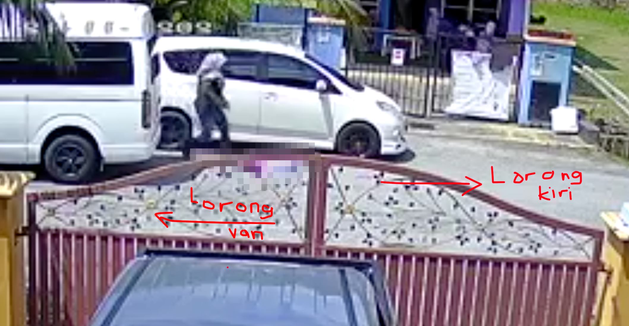 TERTANYA juga kenapa arwah melintas depan van? Tetapi apabila melihat arah pemandu van keluar, barulah perasan rupanya video itu songsang (terbalik/mirror). Kanan jadi kiri, kiri jadi kanan. Terpaksa kami terbalikkan untuk fahamkan situasi yang berlaku.
