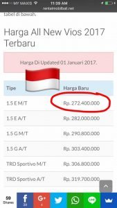 Harga kereta di Indonesia lebih murah? Oh, tidak. Lihat spesifikasi Toyota Vios di Malaysia bermula harga RM76,500 untuk low spec, manakala low spec Toyota Vios di Indonesia bermula harga Rp272,400,000 atau lebih kurang RM90,000.