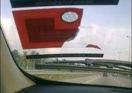 Selepas ditanggalkan, pelekat cukai jalan itu perlu ditampal atas satu lapisan plastik lut sinar. Kemudian, perlu ada satu lagi lapisan plastik lembut sebelum ditempek pula atas permukaan cermin depan (macam ini).