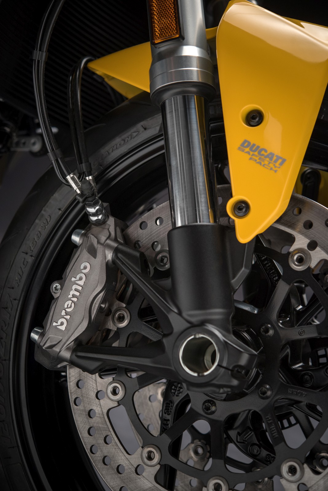 - Warna kuning Ducati Yellow bagi mengimbau kenangan model lama, dan eksklusif untuk model 821 sahaja.
