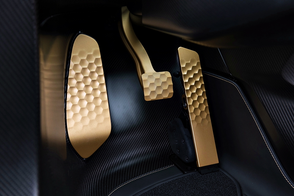 - Kemasan emas pada ventilator udara, butang kawalan, butang mula/henti dan pedal.