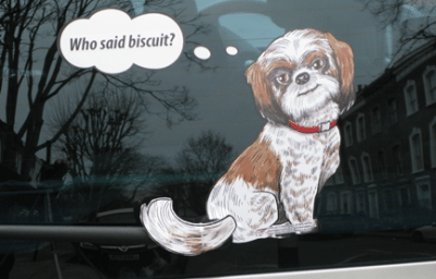 Bagaimanapun, Wagging Wipers (AS) pula hanya menumpukan kepada penghasilan pelekat anjing dan kucing pelbagai baka. Terdapat kira-kira 50 baka anjing yang dijadikan pelekat seperti Afghan Hound, Bernese Mountain dan Chihuahua, manakala kucing pula ada lapan jenis baka berbeza seperti Siam, Parsi Putih dan Maine Coon. Malah Wagging Wipers turut mereka pelekat kepala gajah dengan wiper beraksi sebagai belalai.