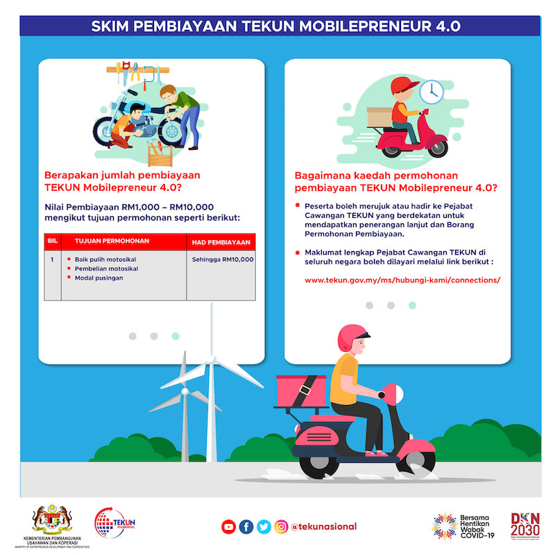 BAGI mereka yang hilang pekerjaan disebabkan krisis kesihatan Covid-19 dan bercadang mencari sumber pendapat sebagai pengirim barangan atau makanan (rider), apa kata anda cuba Program TEKUN Mobilepreneur 4.0.