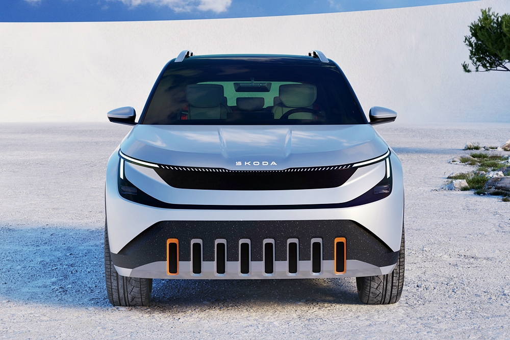 Bahagian depan Epiq membawa rekaan Tech-Deck Face dalam warna hitam kilat dan terjemahan baharu jeriji tradisi Škoda dan menempatkan radar serta kamera depan.