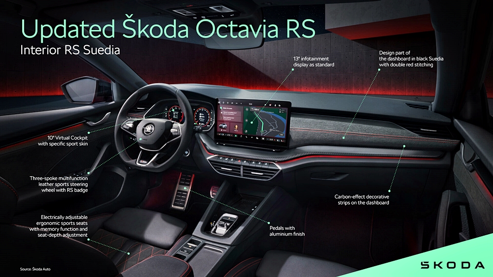 Škoda menawarkan dua pilihan iaitu kekal dengan RS Fabric Design Selection atau pilihan RS Suite Design Selection.