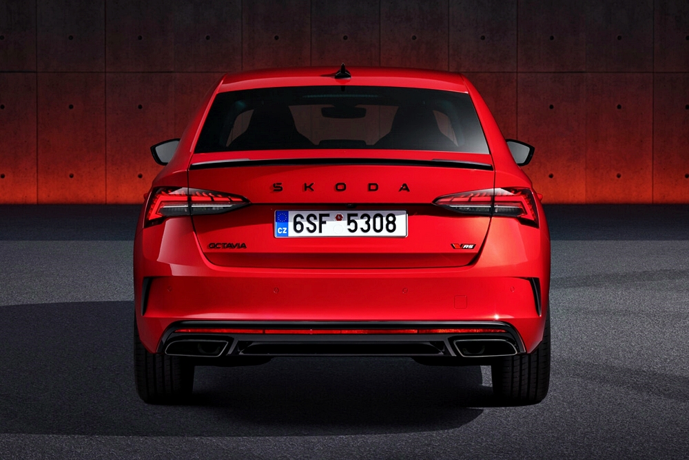 Ekzos sport Octavia RS menggunakan muncung hitam dan perisian baharu enjin melontar nyanyian yang berkuasa.
