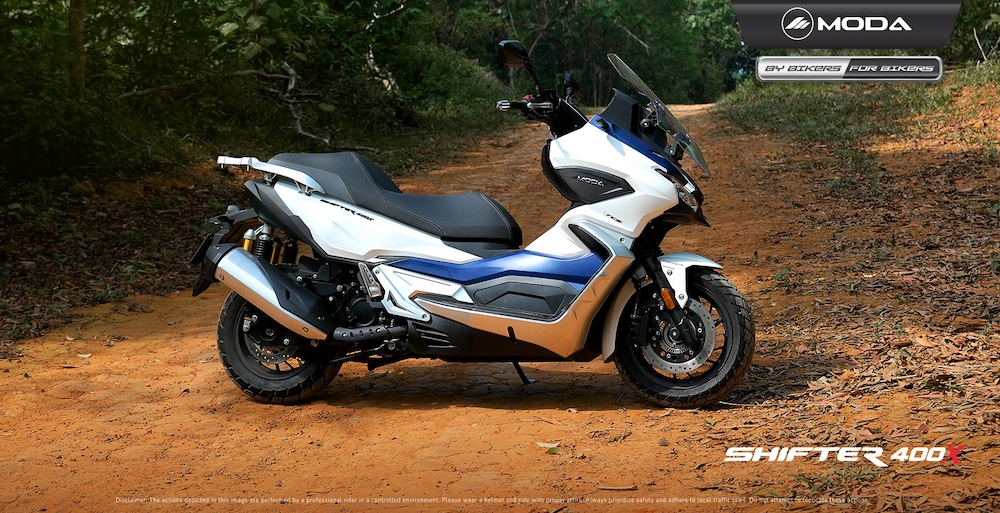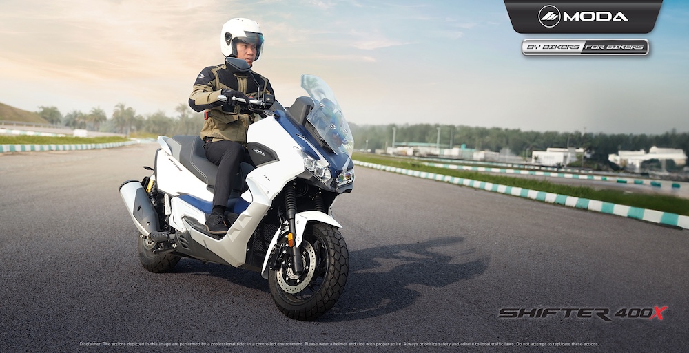 MODA Shifter 400X ditawarkan pada harga RM23,888, tidak termasuk insurans dan cukai jalan, dalamn dua warna pilihan: