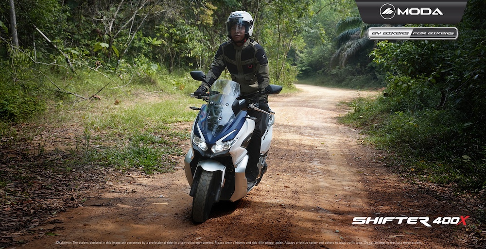 PENGEDAR rasmi motosikal MODA di Malaysia, MDua Motor Sdn Bhd hari ini memperkenalkan model baharu dalam barisan skuter advencer jenama itu, MODA Shifter 400X pada harga RM23,888.